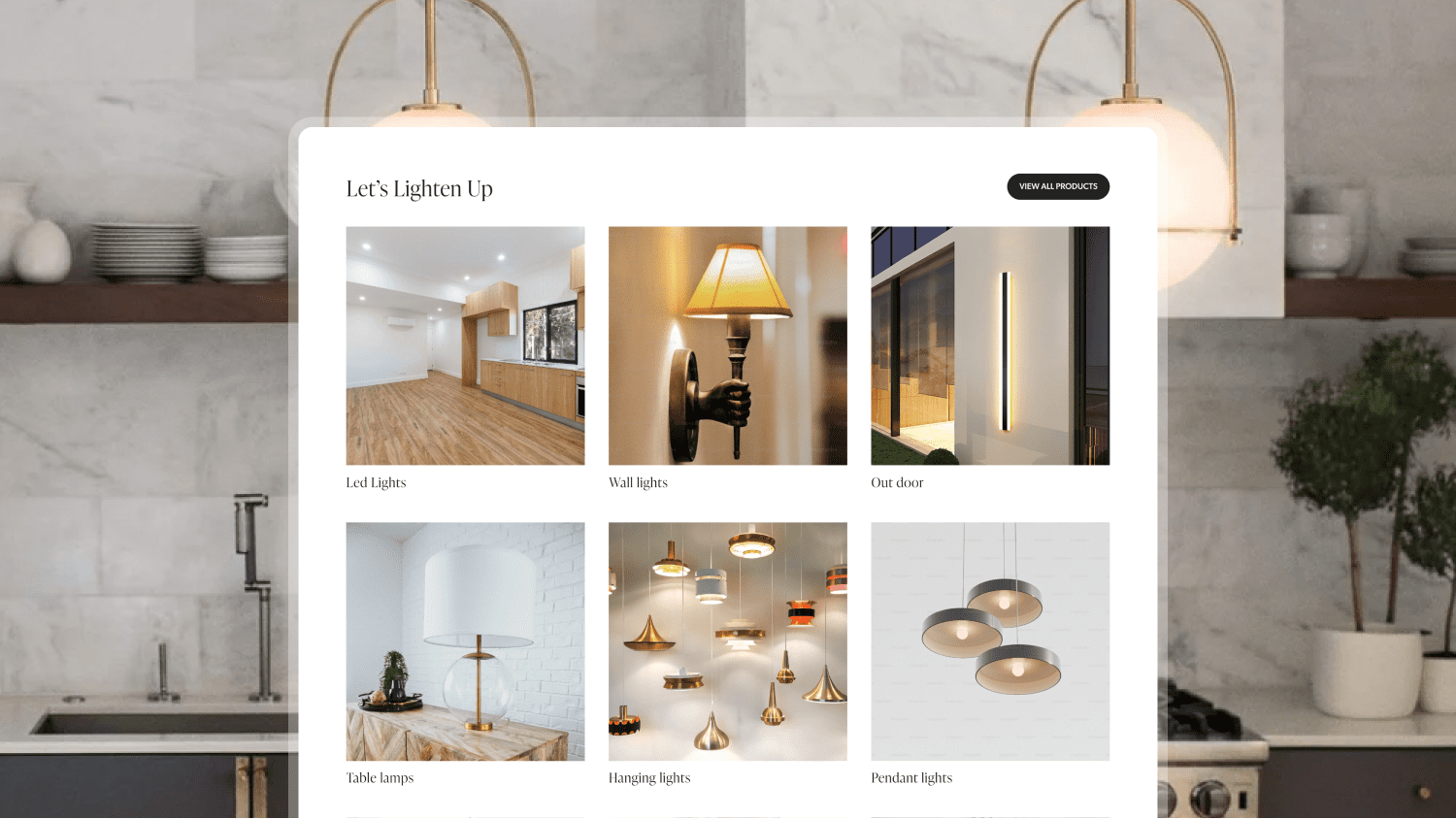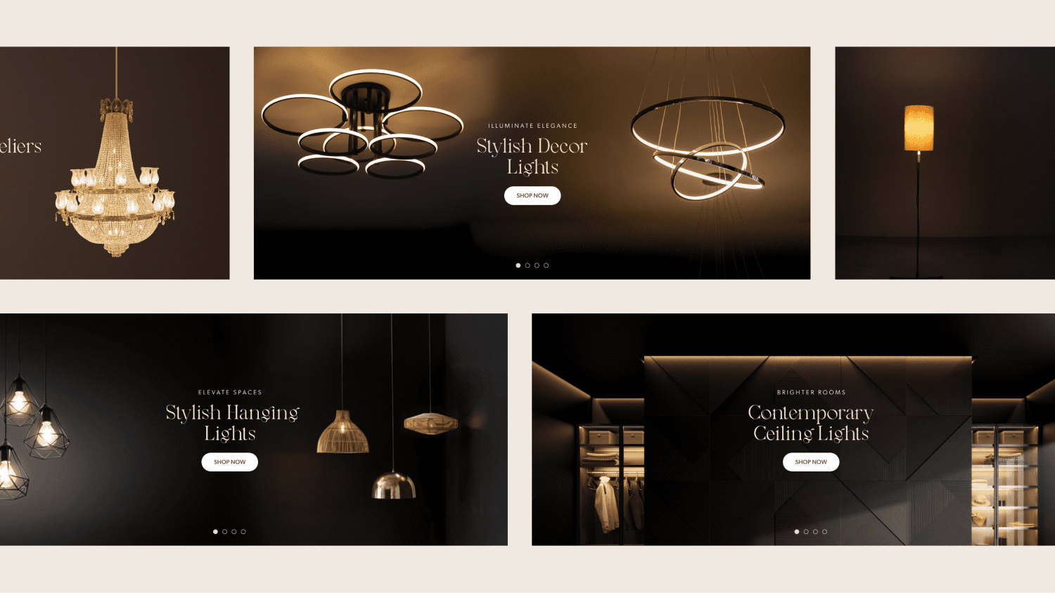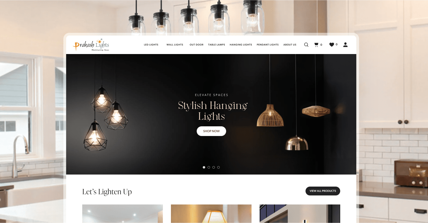 Minimalist, modern Shopify store to showcase premium lighting products with a clean, high-end aesthetic.